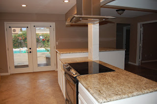 The carpet was yucky and the woodwork all stained dark; which made the entire house feel dark(not a pretty stain at all).